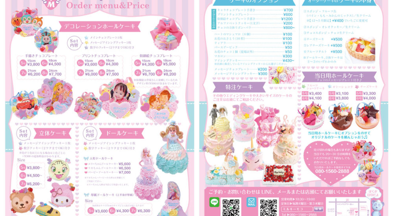 スウィーツショップメニュー兼チラシをデザインさせていただきました B5サイズ