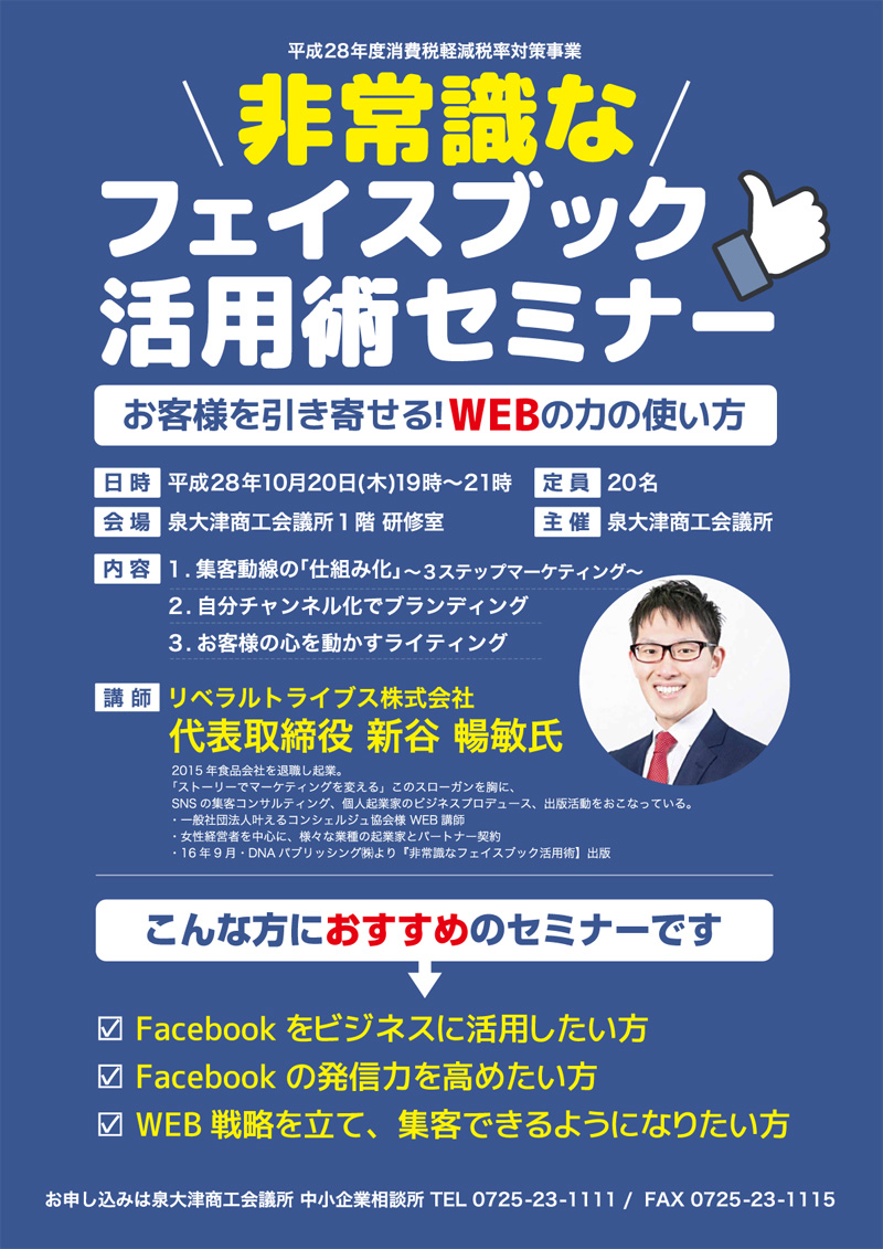 Facebook活用術セミナーのチラシとポスター(同デザイン)をデザインさせていただきました