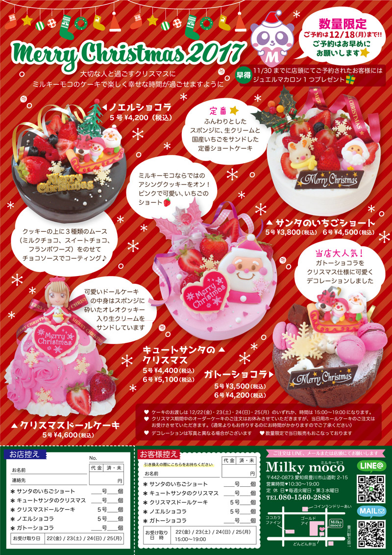 スィーツショップのクリスマス限定メニューチラシをデザインさせていただきました