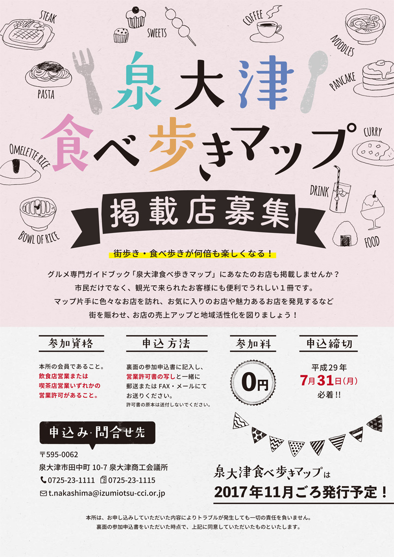 ローカル飲食店情報冊子に掲載するお店の募集チラシをデザインさせていただきました