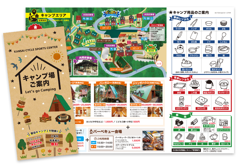 テーマパークキャンプ場案内リーフレットのデザインをさせていただきました