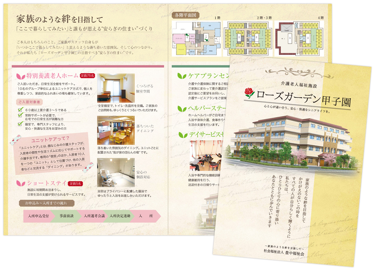 高齢者介護施設のパンフレットをデザインさせていただきました