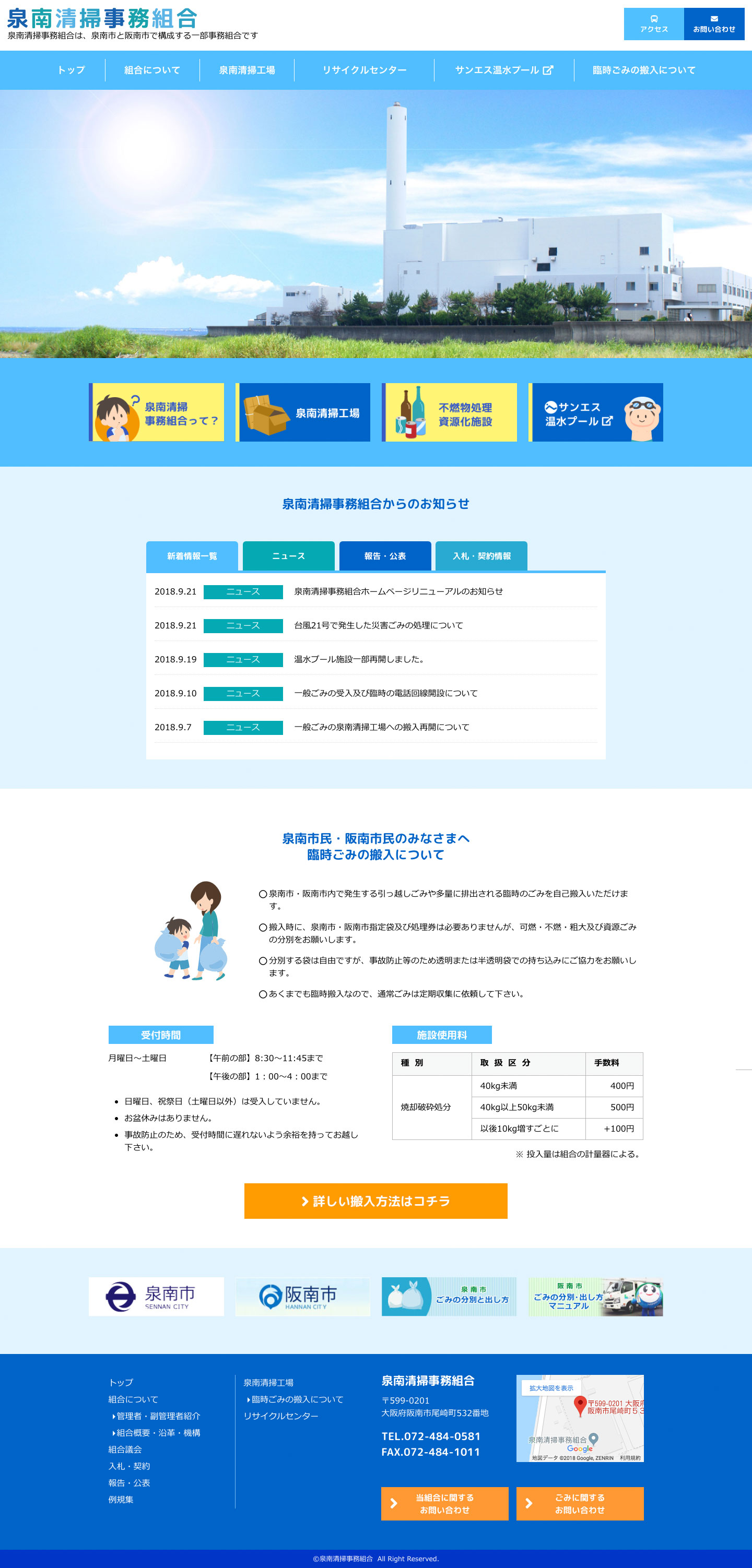 行政(ゴミ処理場)のホームページリニューアルをさせていただきました